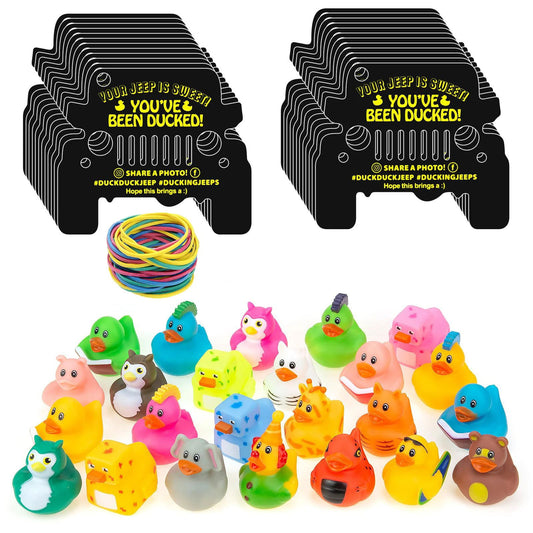 24-Pack Yellow Rubber Ducks with Tags & Bands – Black Jeep Die-Cut Set