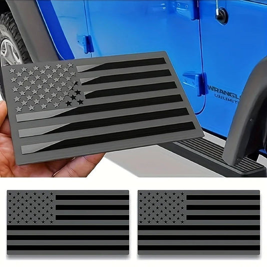 3D Black American Flag Decal 2pcs – 5" x 3" Emblem for Cars, Trucks, & Motorcycles