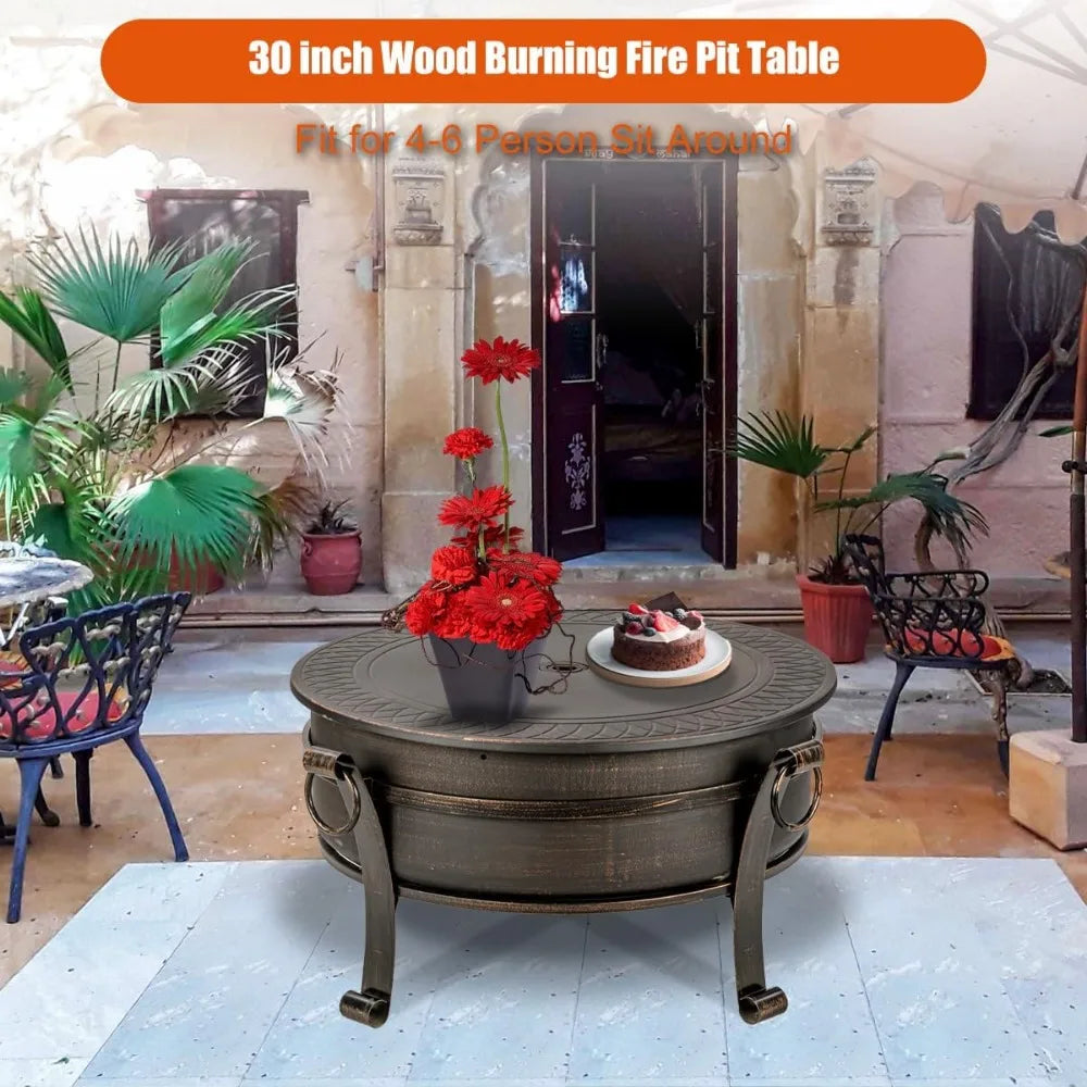 - 3-in-1 Functionality: Use it as a fire pit, BBQ grill, or 30.5-inch round table, seating 4-6 people.