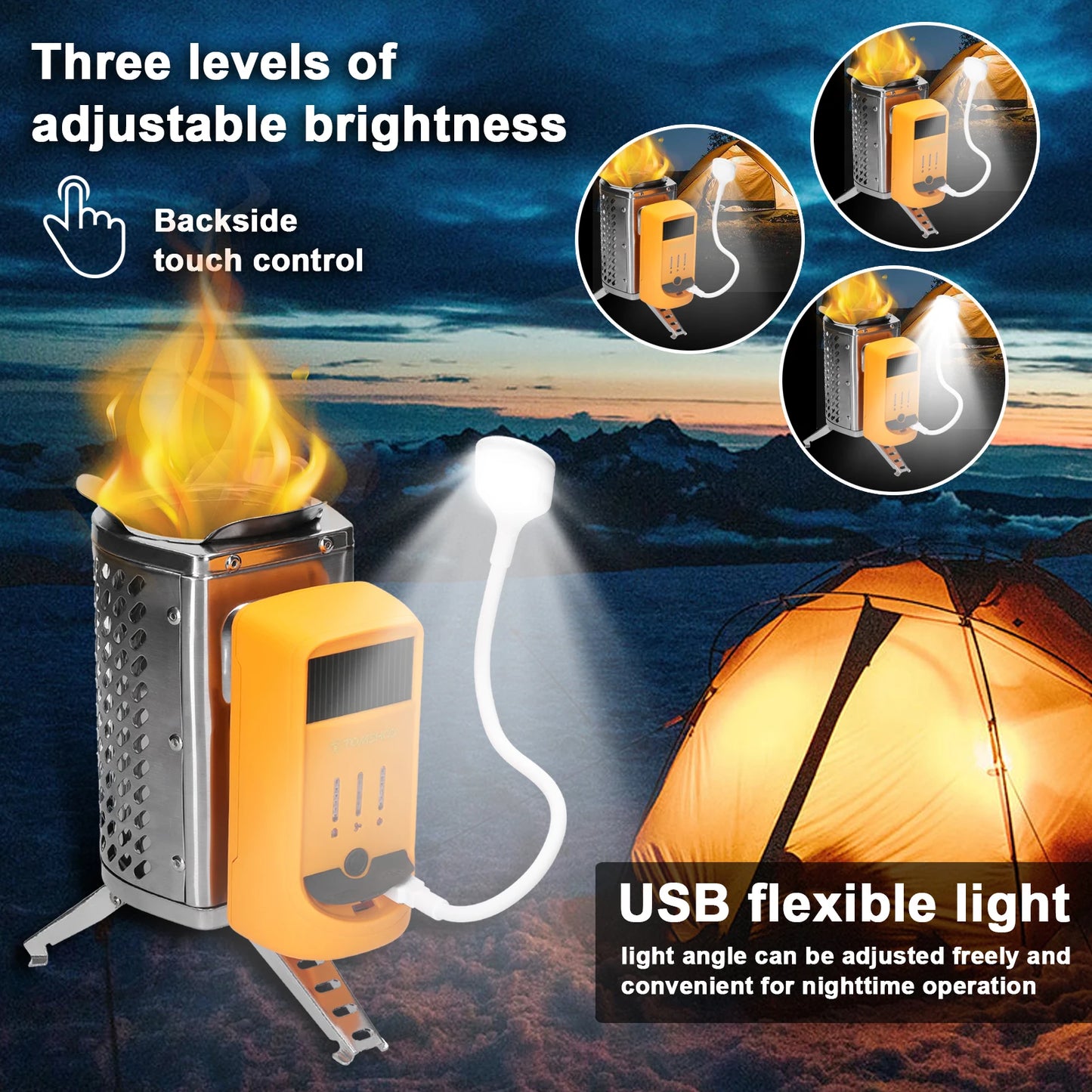 - Thermoelectric Conversion: Generates power from fire, allowing you to charge devices via USB.